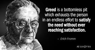 Avarice always wants a little bit more. The Latin word for pitiable, misery is 'miser', in English the derivitive is miser a skinflint—they were considered unhappy and miserable.